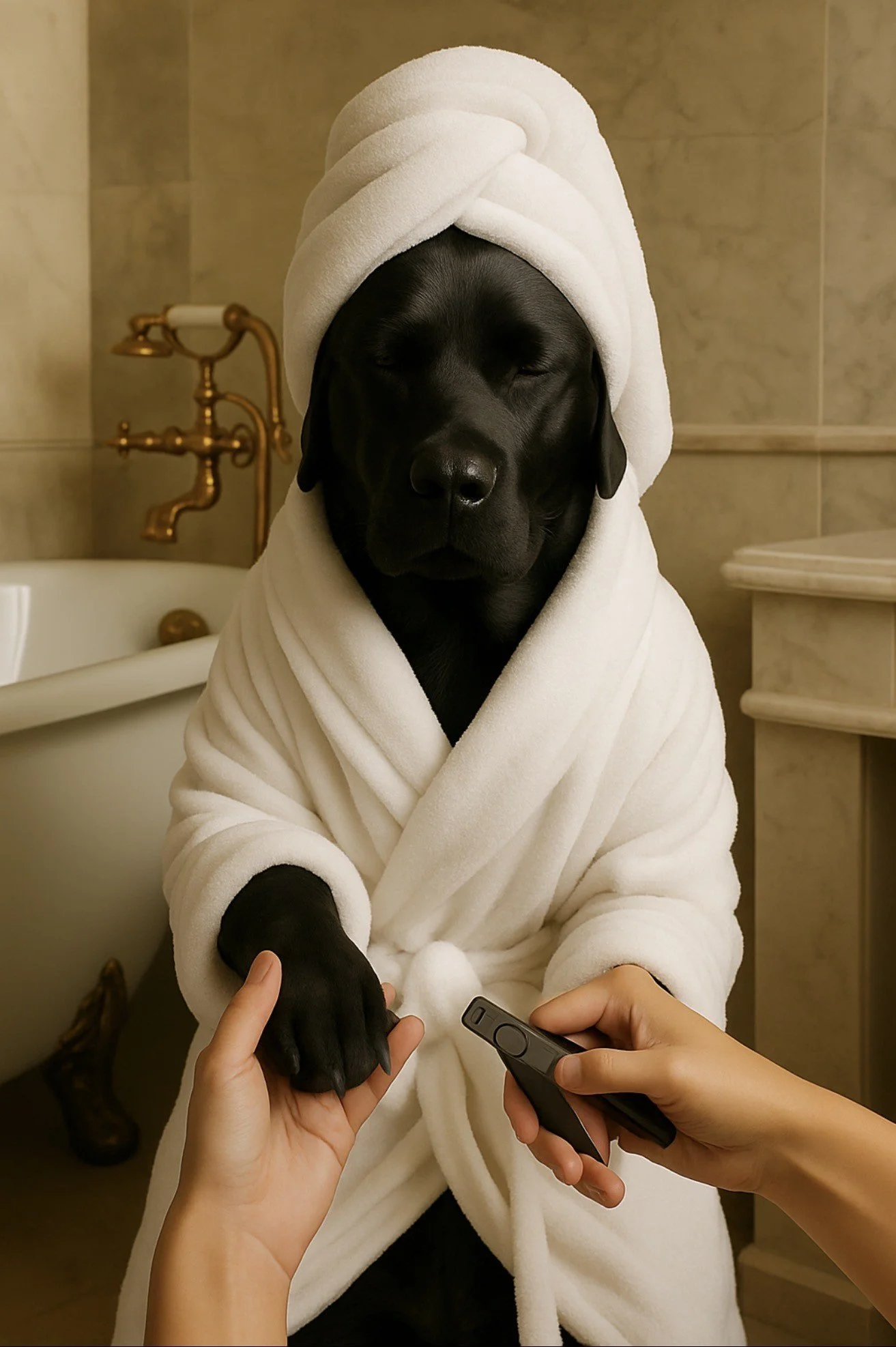 Your full groom includes a bath and blow dry, clipping and styling, de-shedding, nail clipping & ear cleaning